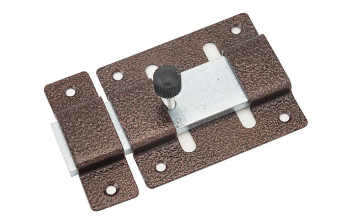 Засов накладной для деревянных и металлических дверей. Материал - сталь, полимерное покрытие. Габариты корпуса - 88х77 мм, 4 крепежных отверстия. Плоский ригель размерами 30х6 мм с вылетом 32 мм. В комплекте ответная планка 31х77 мм.